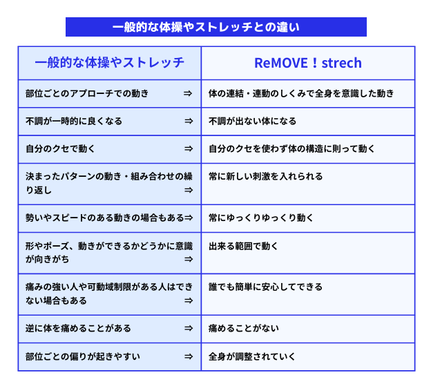 リムーブストレッチと一般的な体操やストレッチとの違い、
